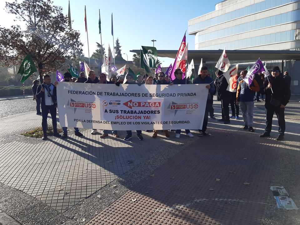 Tras la convocatoria realizada por la FTSP-USO Andalucía en Granada se ha realizado concentración el día 10 de Diciembre de 2019 a las puertas de la Diputación provincial de Granada para protestar por la situación de impago que la empresa GRUPO EME SEGURIDAD mantiene con los trabajadores a los que adeuda el salario de tres meses.