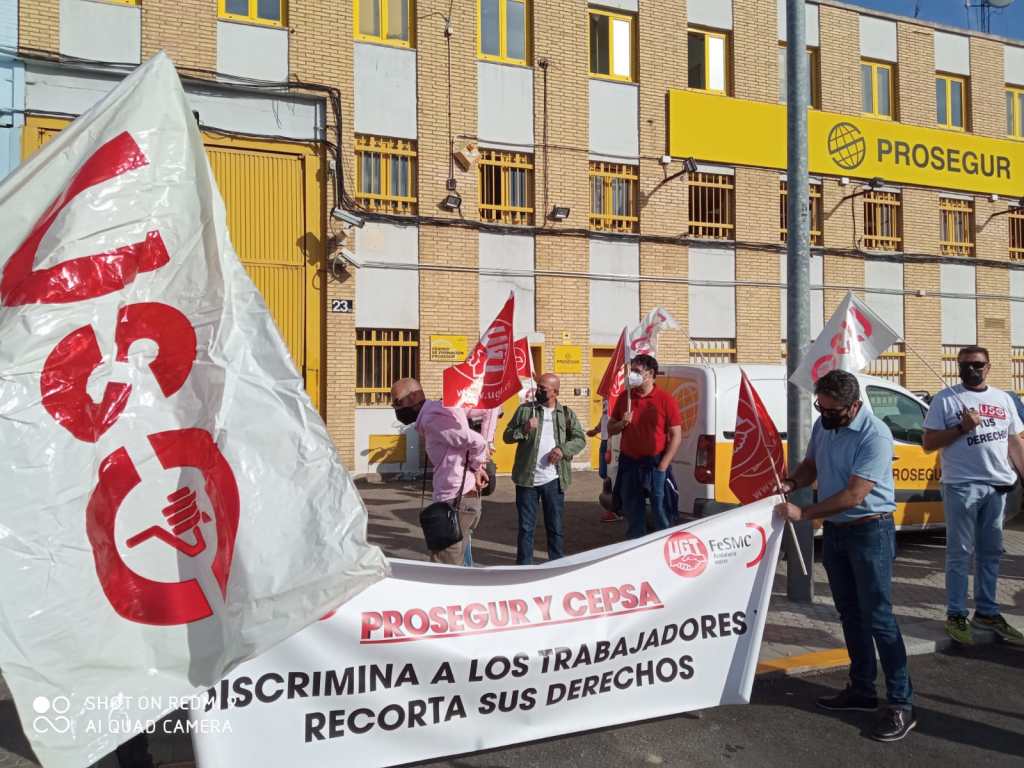 Continuando con las acciones emprendidas por la FTSP-USO Andalucía, junto a otras organizaciones sindicales, en esta ocasión nos hemos manifestado en la sede central de Prosegur Sevilla en protesta por el reiterado incumplimiento de derechos en su cliente Cepsa refineria en Huelva.