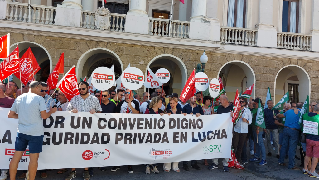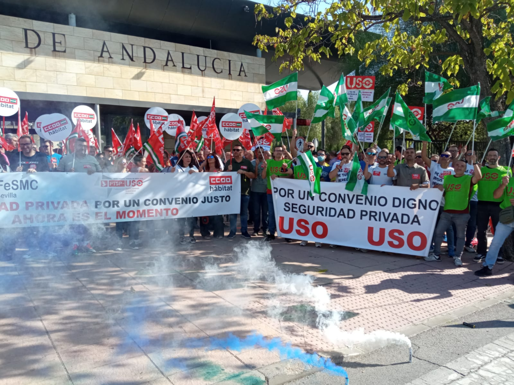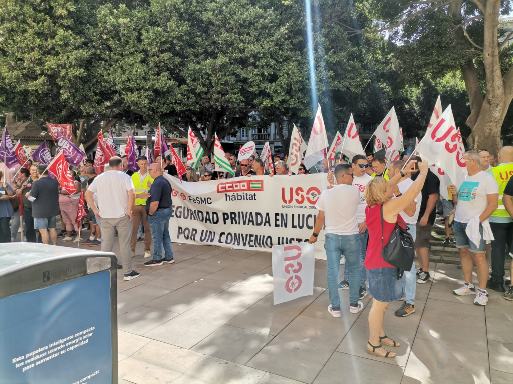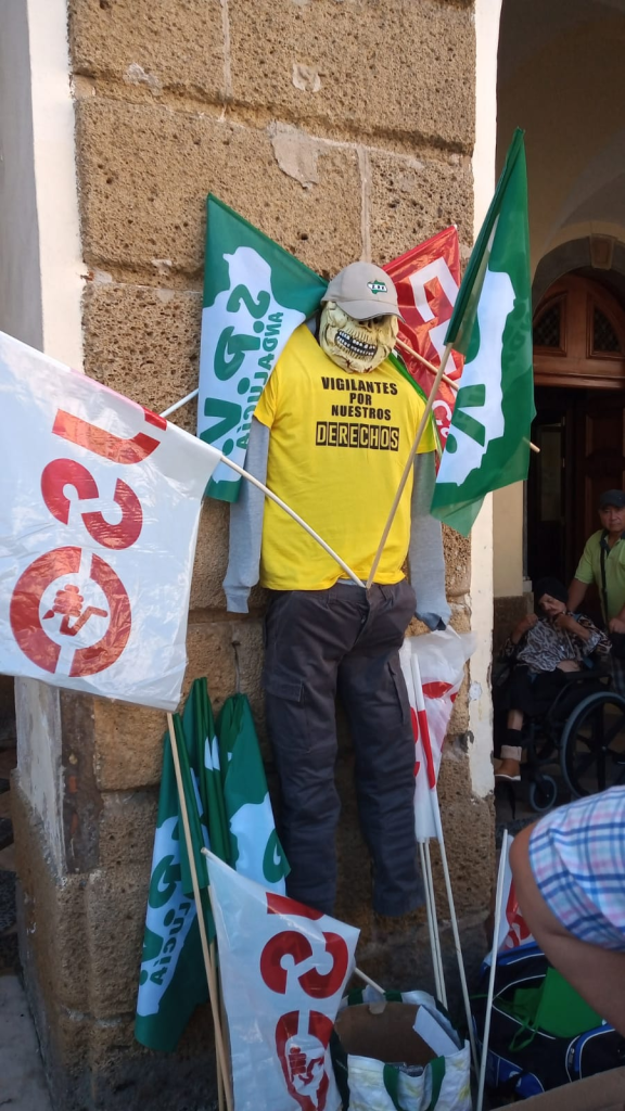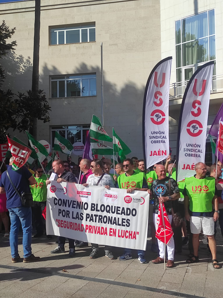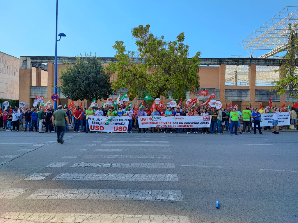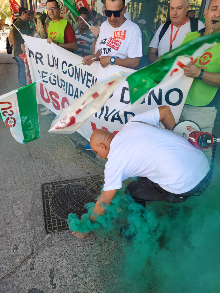 Cumpliendo lo pactado por la plataforma creada entre los sindicatos negociadores, el dia que se bloqueó la negocación del convenio colectivo del sector de la seguridad privada, la Federación de Trabajadores de Seguridad Privada de USO Andalucía ha acudido a los lugares estratégicos para mostrar indignación ante las exigencias de la patronal que no hacen mas que doblegar la ya débil situación de los trabajadores. La FTSP USO-A no va a ceder ante las incongruencias ni ha ceder derechos que se han conseguido a través de años de duro esfuerzo.