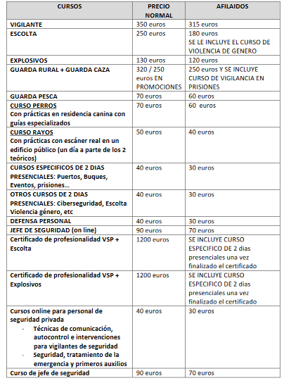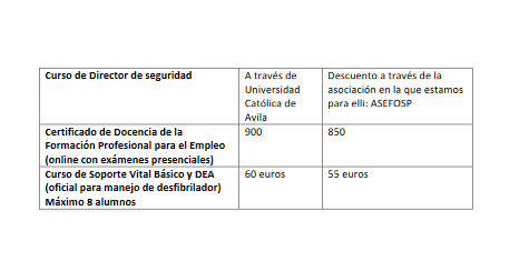 Según este acuerdo nuestros afiliados podrán obtener descuentos, que adjuntamos en una tabla, en los cursos ofertados por la academia. La FTSP USO-A considera que debemos apoyar la formación privada en el sector porque supone la base o los cimientos de la profesión.