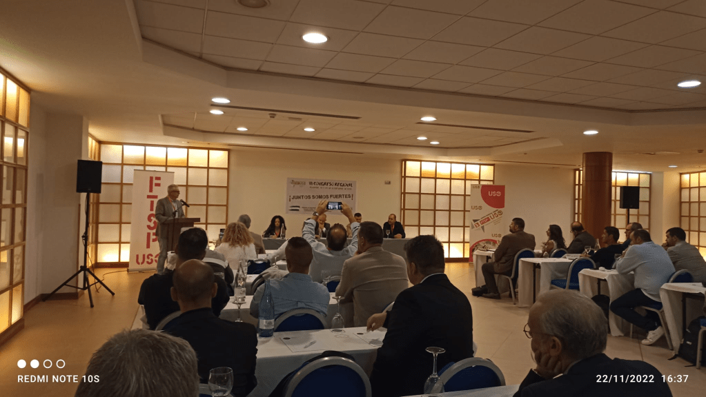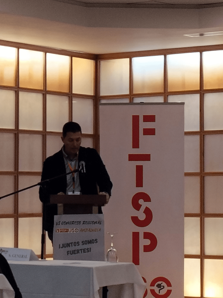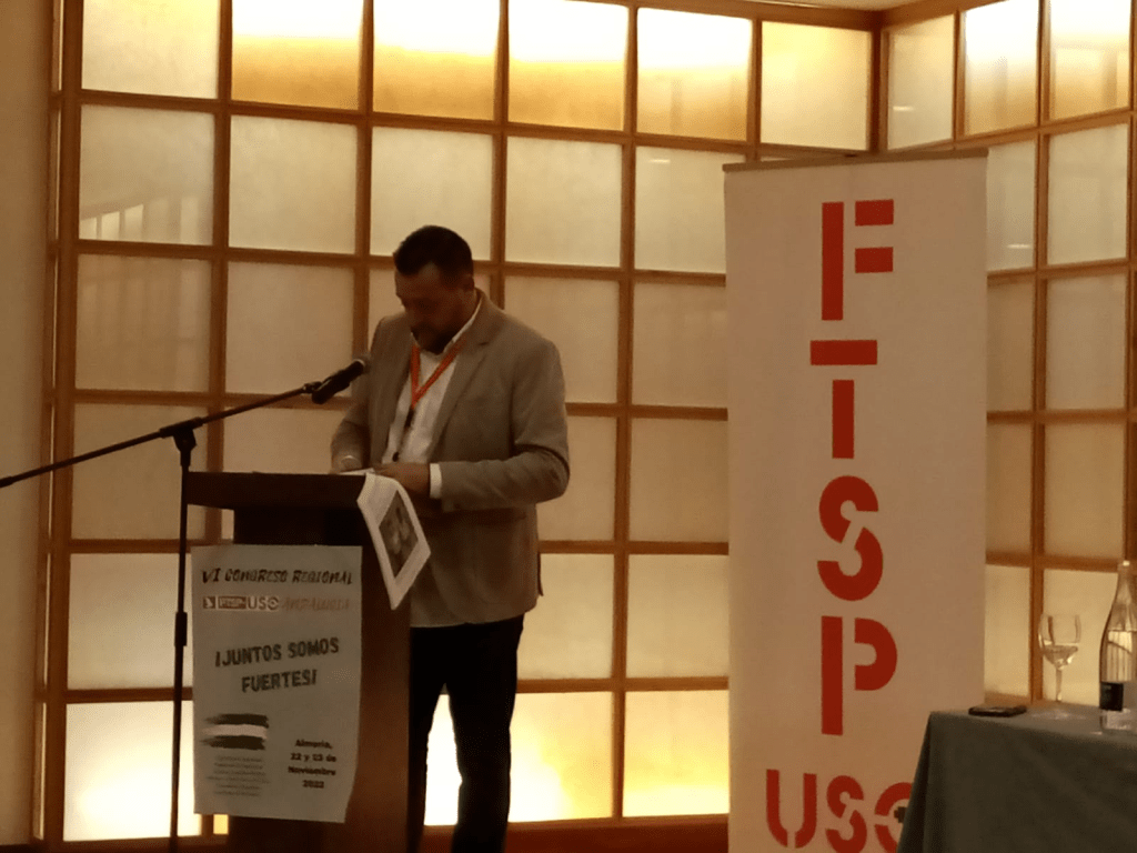 De un total de 39 asistentes, estuvieron algunos invitados de interés. Basilio Febles, Secretario General de FTSP USO, intervino recordando la situación de esta federación hace cuatro años y elogiando el gran equipo humano que se ha creado en la actualidad. Así mismo lo enlazó con los problemas que el sector atraviesa en la actualidad. Domingo Castillo, Secretario General de USO-A, indicó el acierto del lema y tuvo unas palabras con la historia de USO en Andalucía, además de reconocer el alto crecimiento de esta federación. Tras ellos otros invitados tuvieron unas palabras. José Carlos Sánchez, Coordinador de FS-A, reconoció también le trabajo de esta federación. Juan Pérez, de la ejecutiva andaluza de FEUSO, destacó los grandes valores de las personas de FTSP USO-A. Juan Amancio, de la FAC, habló de los problemas del sector y de las relaciones laborales actuales. En este derredor, la compañera Sonia A, técnico-operador, recordó que el sector, tal como indica el lema del congreso, lo componen muchas más categorías profesionales que deben ser visibilizadas.