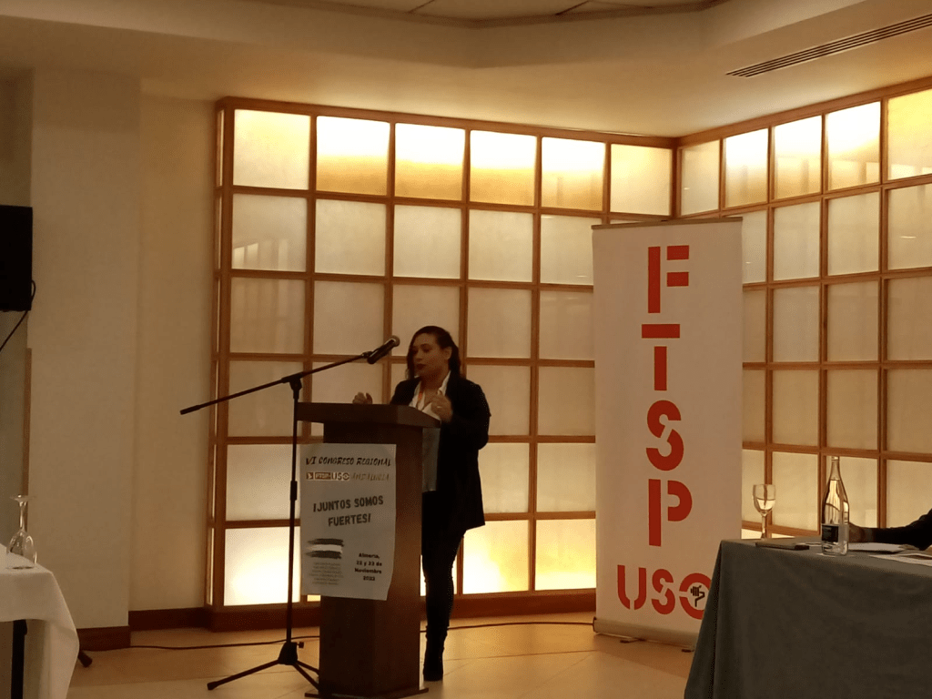 Lucia Gutiérrez, Secretaria de Igualdad de FTSP USO-A añadió algunos datos de las demandas y déficits en la comunidad autónoma andaluza de cara a la acción sindical. De la misma manera expuso los objetivos para los próximos cuatro años. Sus propuestas fueron aprobadas por la sala. Siguiendo esta intervención Víctor Villalobos, Responsable Regional de Guardas Rurales, retomó las palabras de la compañera Sonia para apostar por la visibilizarían de los Guardas Rurales en Andalucía. A su vez relató los objetivos cumplidos por nuestra federación en tierras andaluzas y los objetivos y proyectos propuestos. Tras él Lucia Gutiérrez expuso un proyecto sobre la edad de jubilación en el sector de la seguridad privada que se inicia con mucha ilusión y que pretende equipararnos con los FFCC. Este proyecto también fue aprobado por la sala.