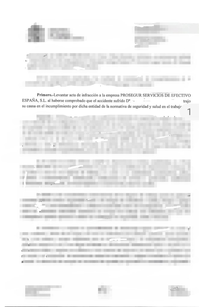 A raiz de un accidente de trabajo sufrido recientemente, objeto de la denuncia, se personó en las instalaciones de Prosegur Inspección de Trabajo para proceder a realizar una investigación. Tras eso se citó en las dependencias de Inspección a responsables de la mercantil, donde se levantó la mencionada acta de infracción.