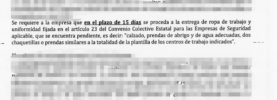 La Federación de Trabajadores de Seguridad Privada de USO Andalucía, en Huelva, ha obtenido resolución favorable de Inspección de Trabajo contra la empresa Trablisa por el incumplimiento del artículo 23 del Convenio Estatal de Empresas de Seguridad donde se regula todo lo referente a la uniformidad.