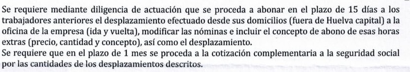 La Federación de Trabajadores de Seguridad Privada de USO Andalucía en la provincia de Huelva, ha vuelto a obtener resolución favorable frente a la mercantil Trablisa en concepto de abono de desplazamiento y el tiempo invertido en el desplazamiento.