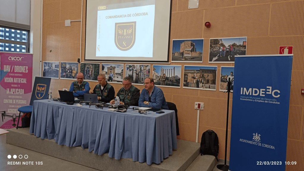 Los miembros del equipo Pegaso de la Guardia Civil hicieron un recorrido no solo por la normativa actual del uso de drones sino por todas las áreas de su cometido como son: vehículos aéreos, control, seguridad aérea, espacio aéreo restringido, autorizaciones, sanciones, etc. Además hicieron mención en varias ocasiones a los procedimientos de autorización y a la Agencia Estatal de Seguridad Aérea AESA. Tras su exposición se produjo un debate muy interesante sobre algunas casuísticas, legislaciones y procedimientos.
