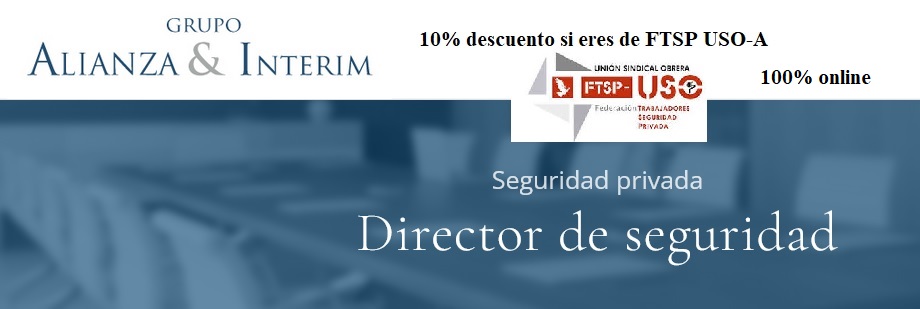 La academia de formación Alianza & Interim, con la que la FTSP USO-A tiene convenio suscrito de colaboración, oferta este curso online de Director de Seguridad.