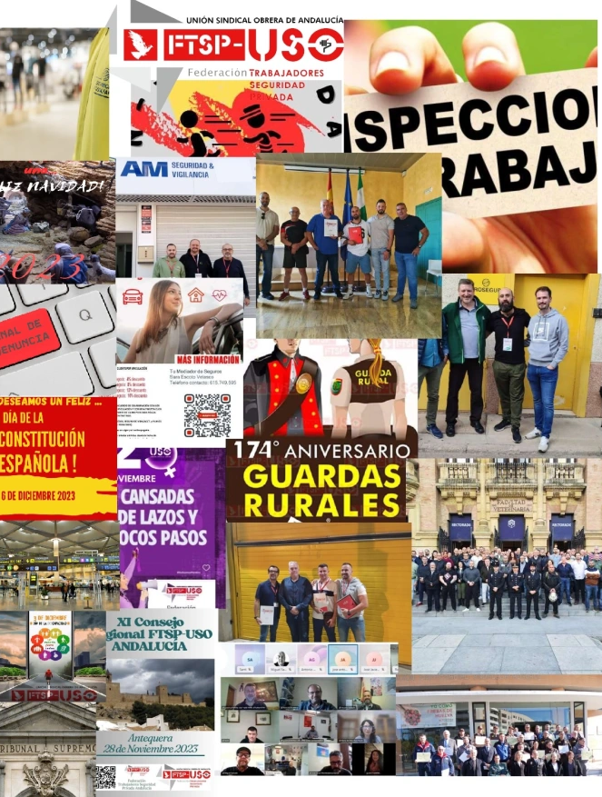 También estuvimos en primera linea en cuanto al problema en AM Seguridad y los impagos. En Jaén obtuvimos un delegado en Prosegur SIS, el único elegible. Hemos recogido todo el proceso de negociación del convenio de los auxiliares de servicios, donde la FTSP USO ha sido parte de la mesa negociadora. Hemos mostrado también nuestras reuniones tales como las de la comisión ejecutiva y el consejo de la FTSP USO-A.