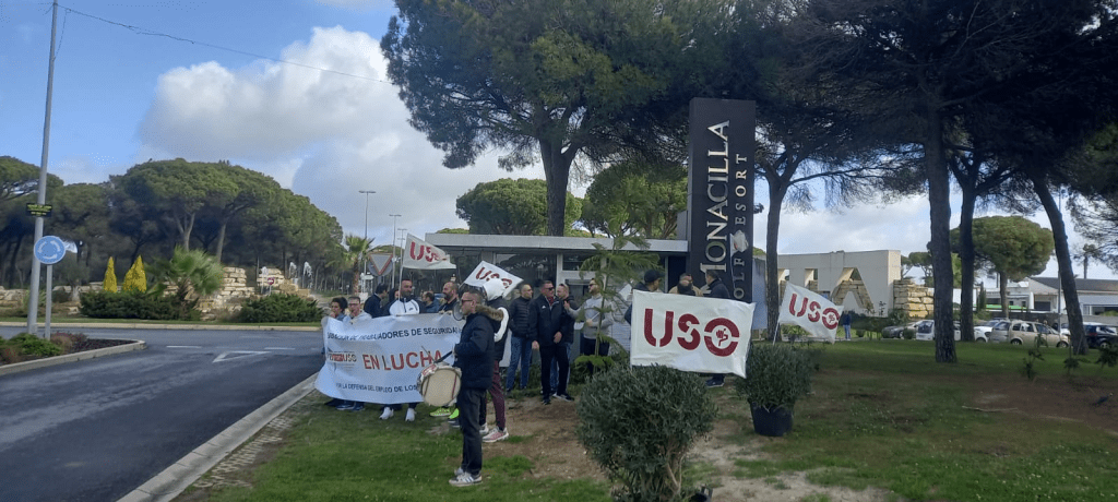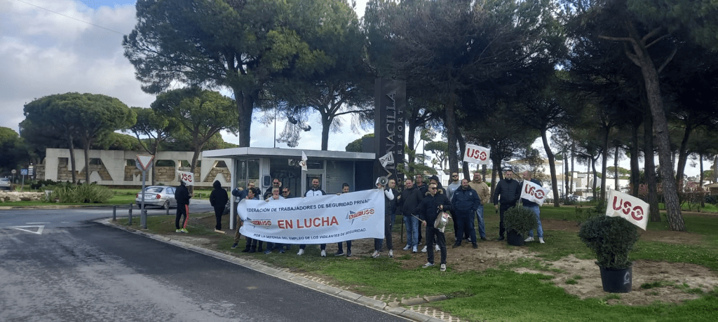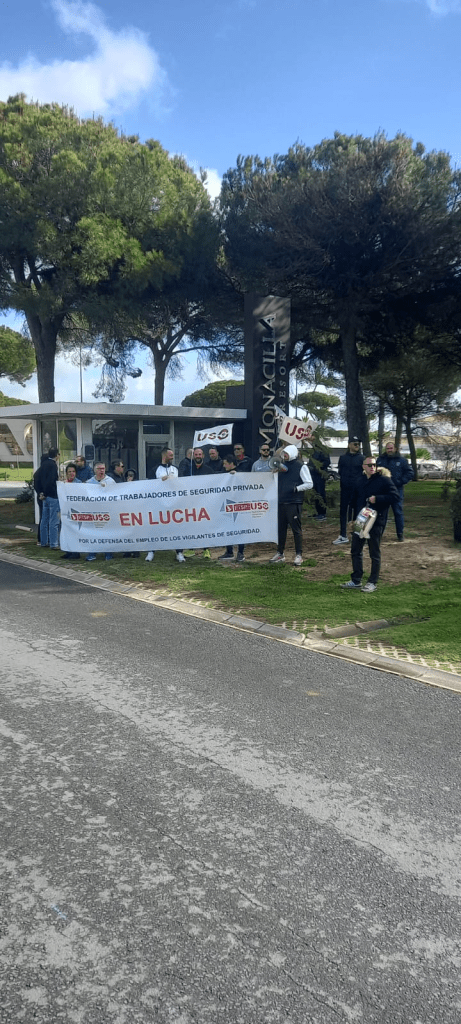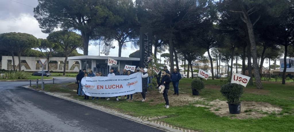 Este lunes, día 26 de febrero, se ha producido otra vez en la urbanización La monacilla de Huelva una concentración organizada por la Federación de Trabajadores de Seguridad Privada de USO Andalucía para protestar por los reiterados incumplimientos del convenio colectivo vigente y por los despidos disciplinarios injustificados de la empresa Fort Security Spain.