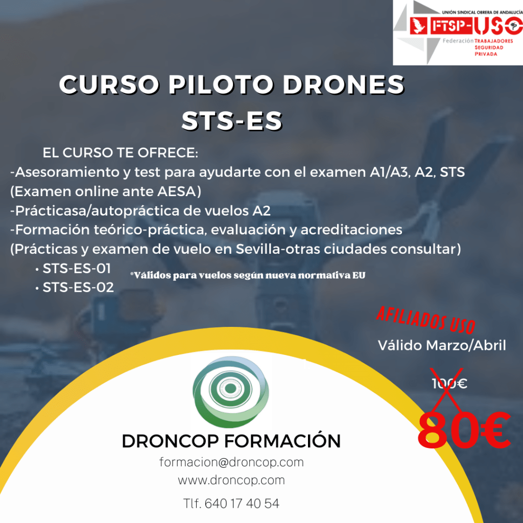 La academia Droncop formación ha contado con nuestra organización para su oferta formativa. Los afiliados podrán disfrutar durante los meses de marzo y abril de un descuento del 20%.