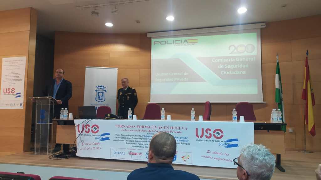 La FTSP USO-A, en colaboración con la RED AZUL, ha celebrado en Huelva una jornada formativa sobre «Los retos para el futuro de la Seguridad Privada».