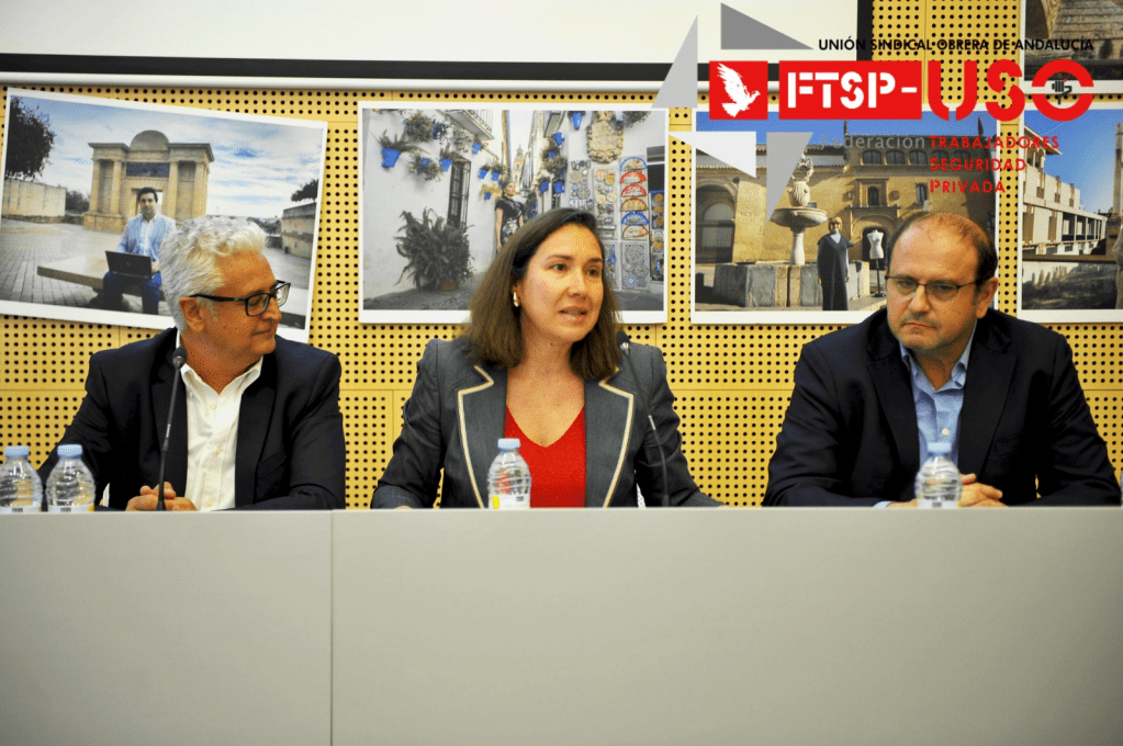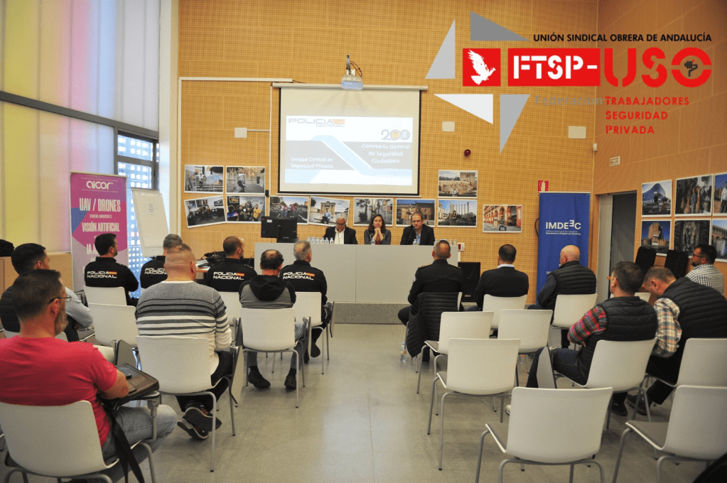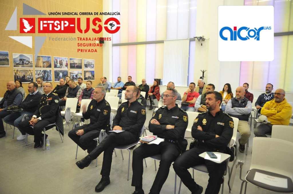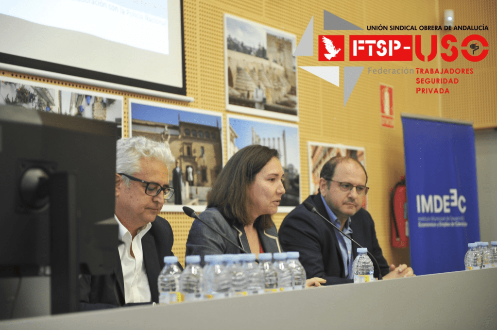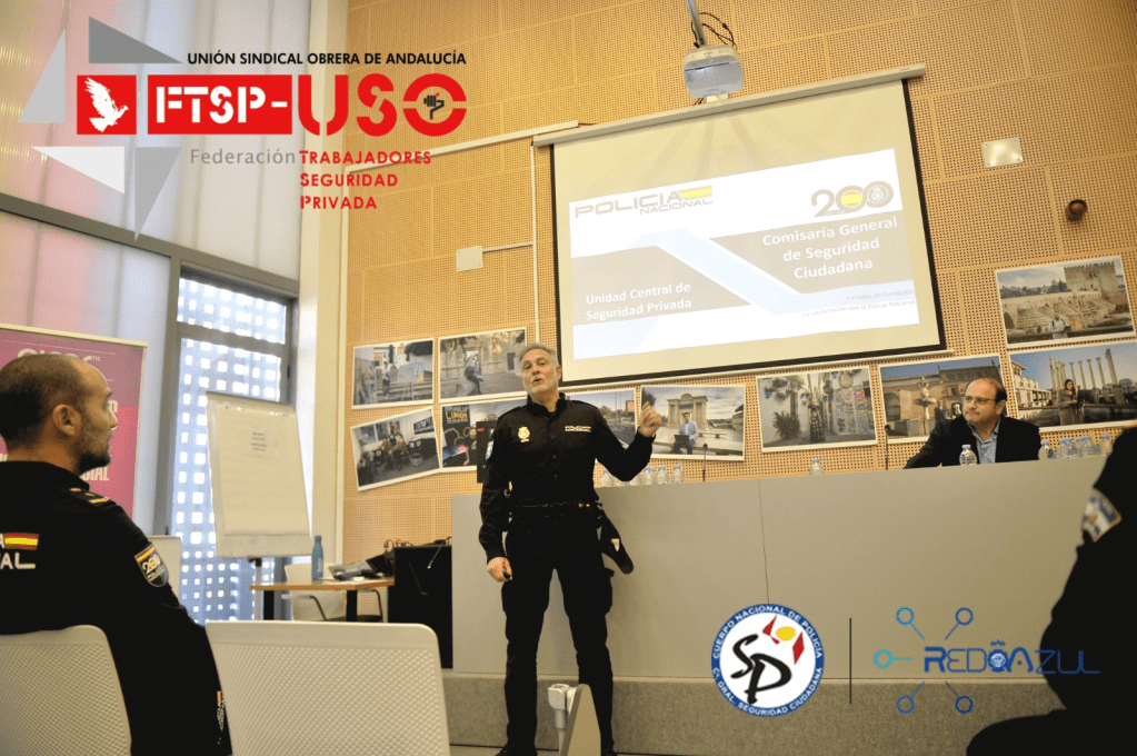 El evento, que versaba sobre la Profesionalización y la Formación en Seguridad Privada, contó con las presencia de: Domingo Castillo (Secretario General de la USO-A), y Mª Luisa Gómez (Gerente IMDEEC). Como ponentes figuraban: Víctor Blazquez (Inspector Red Azul), Francisco Solano (Jefe de la Policía Local de Benamejí) y Agustín Serrano (Docente de Aicor UAS).
