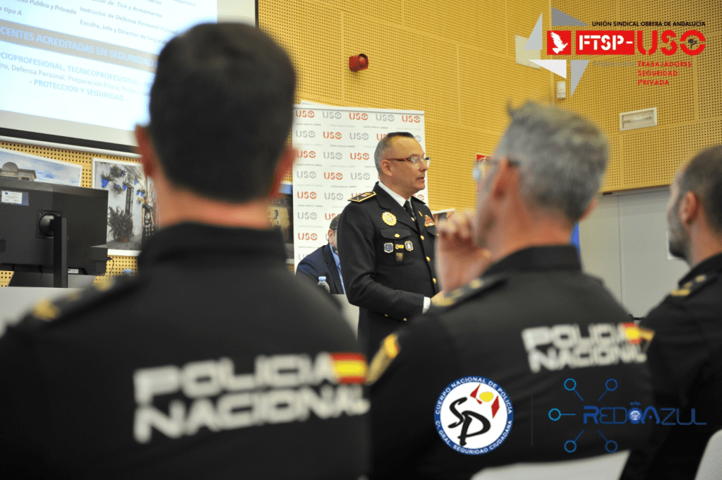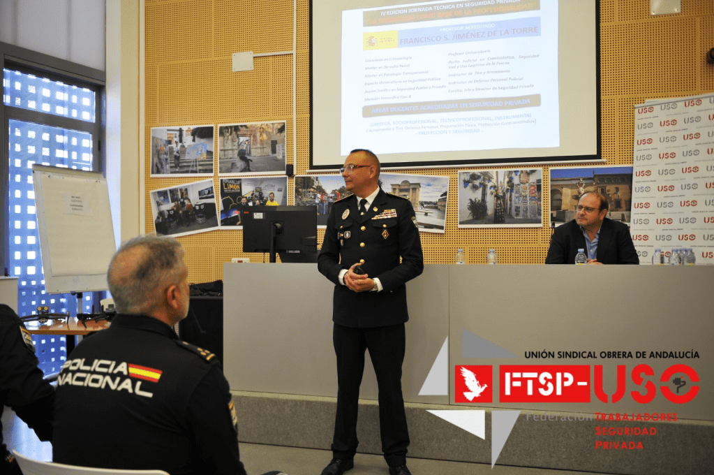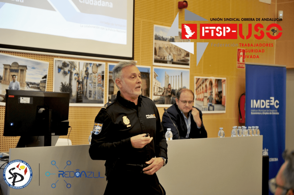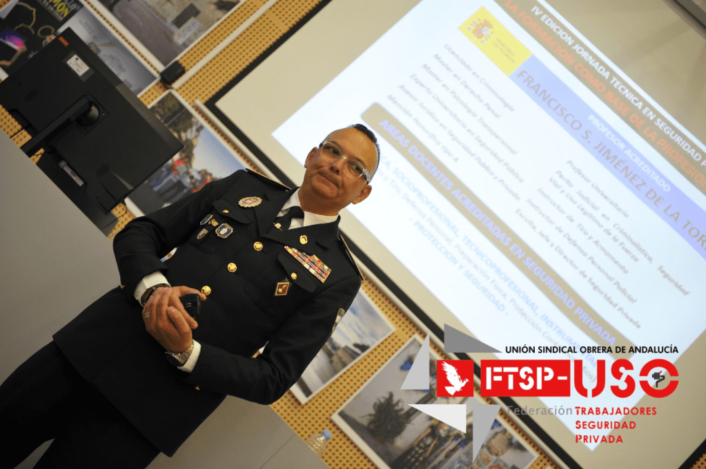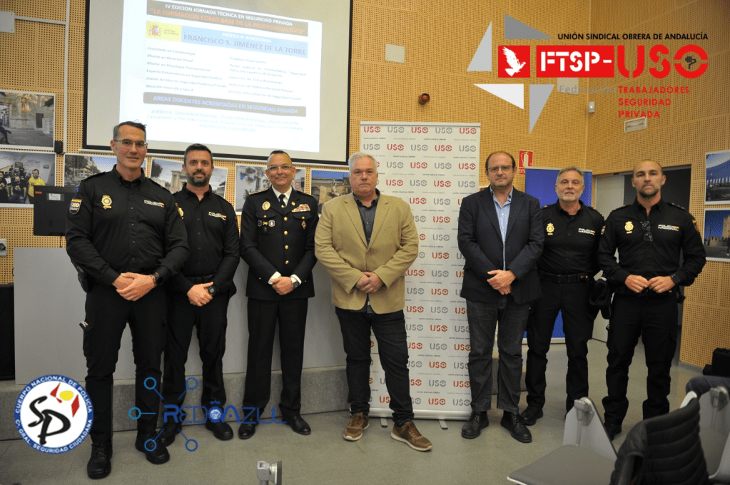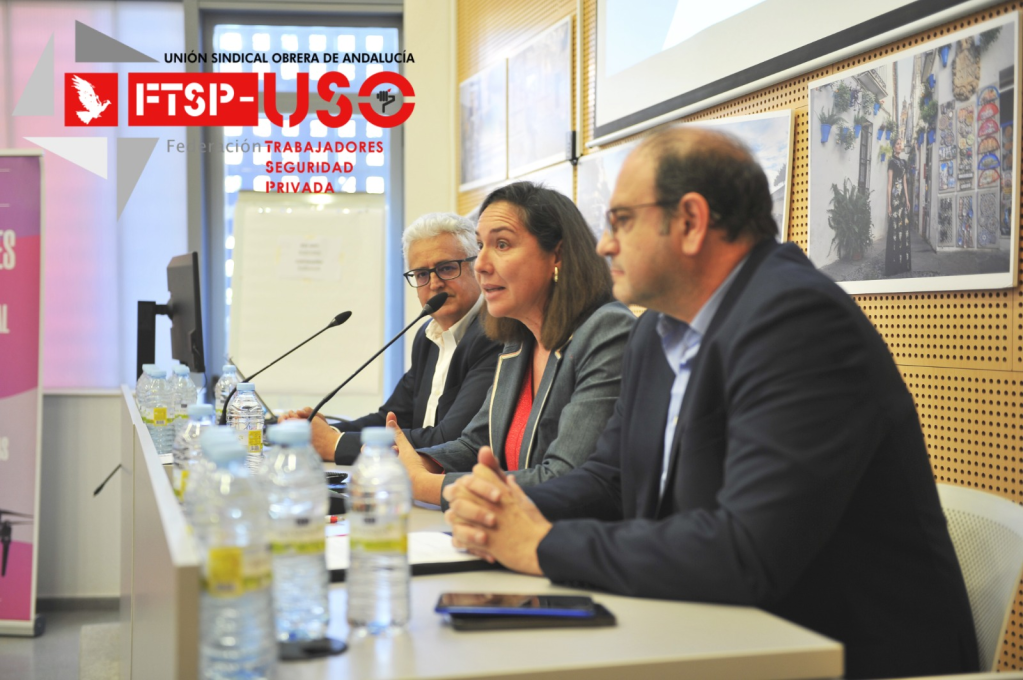 El evento, que versaba sobre la Profesionalización y la Formación en Seguridad Privada, contó con las presencia de: Domingo Castillo (Secretario General de la USO-A), y Mª Luisa Gómez (Gerente IMDEEC). Como ponentes figuraban: Víctor Blazquez (Inspector Red Azul), Francisco Solano (Jefe de la Policía Local de Benamejí) y Agustín Serrano (Docente de Aicor UAS).