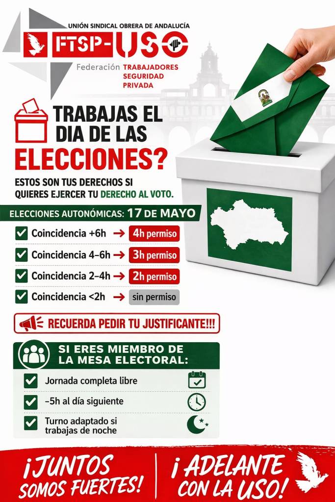 Desde FTSP Andalucía te recordamos cuáles son tus derechos laborales para poder ejercer el voto en las próximas elecciones autonómicas.