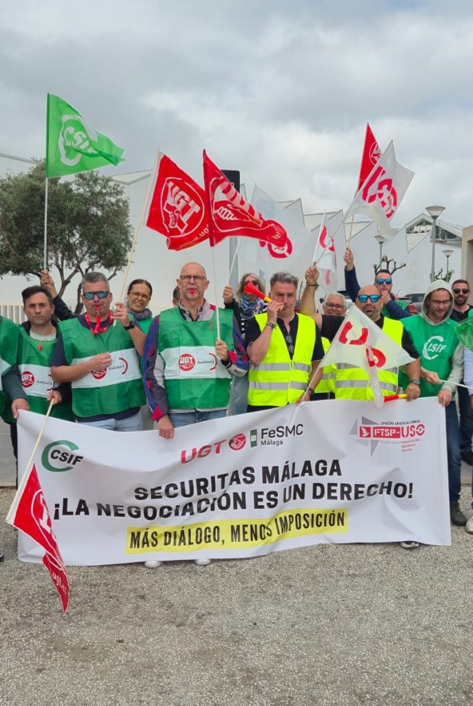 Los trabajadores y trabajadoras de Securitas en Málaga volvieron a concentrarse ayer, lunes 27 de abril, dando continuidad al calendario de movilizaciones semanales impulsado por el comité de empresa.